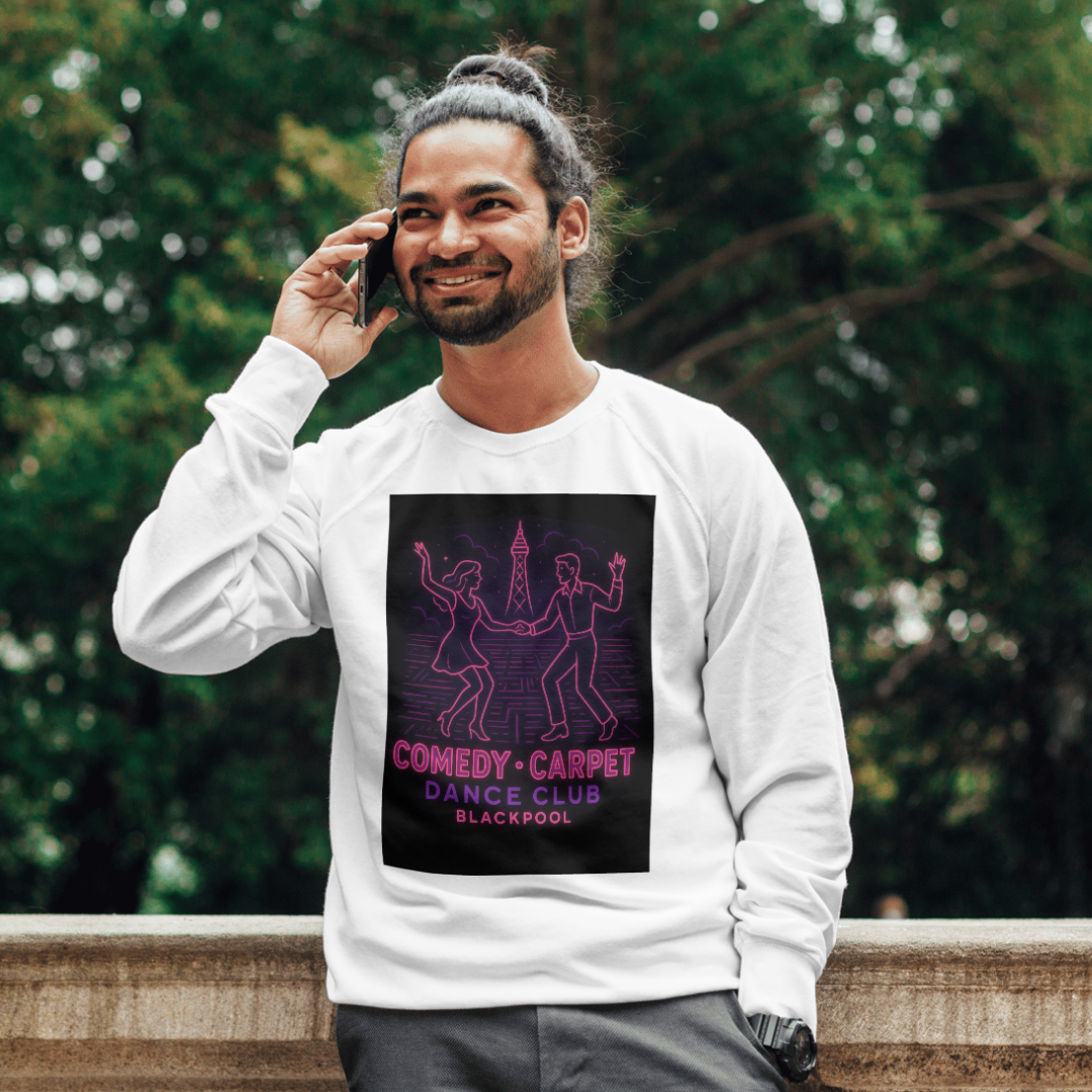 Celebrate Blackpool’s iconic Comedy Carpet with a stylish twist! The Comedy Carpet Dance Club Hoody is a must-have for anyone who loves music, dancing, and the vibrant nightlife of the seaside town.